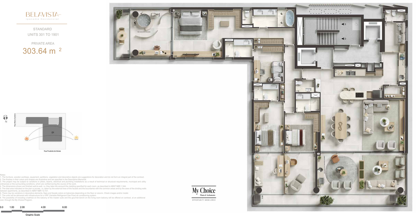 19 unidades (17 standard 303 m², 1 up garden 513 m², 1 penthouse 608 m²) | 3 Vagas por unidade |